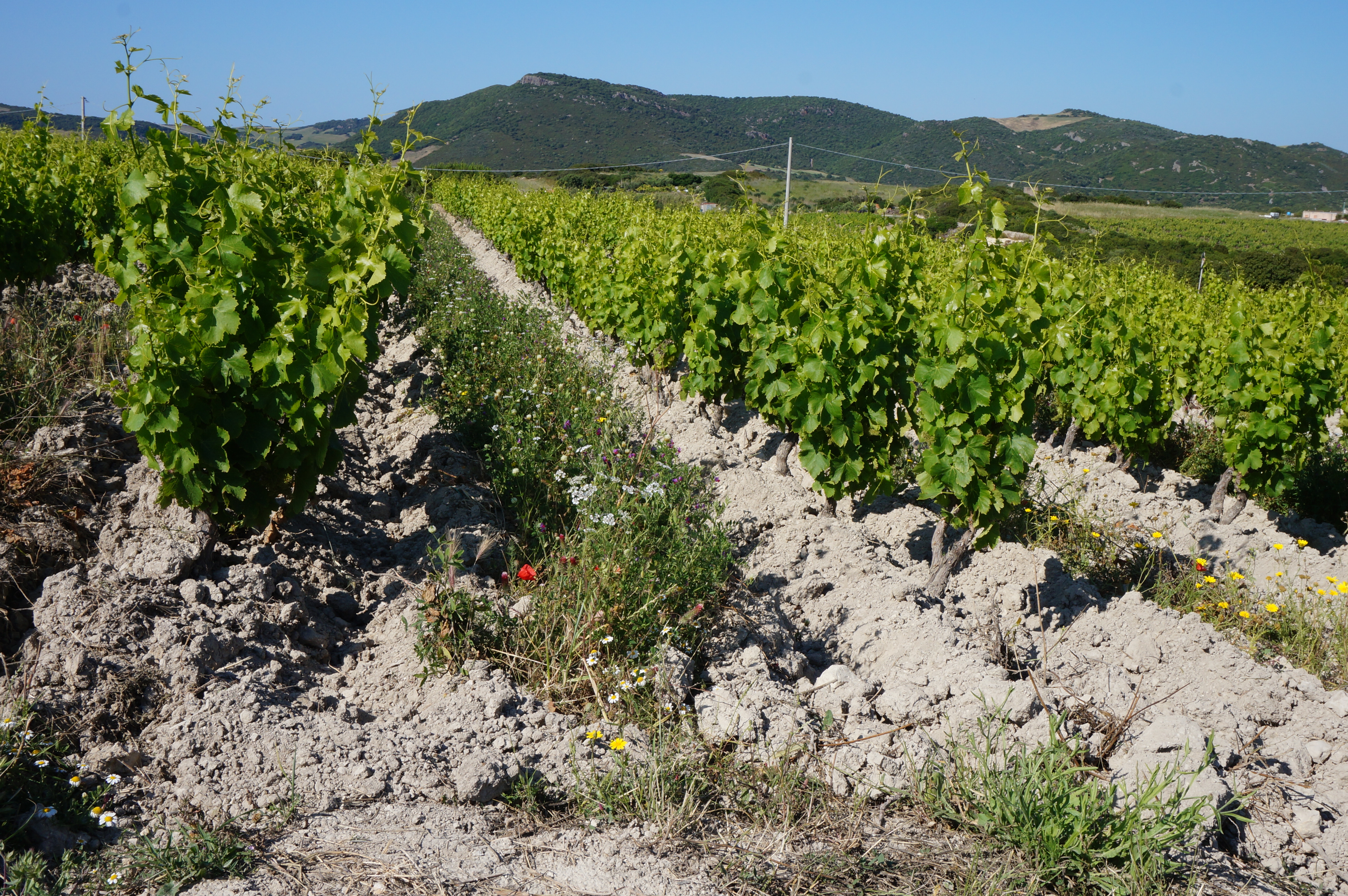 The vineyards at Tenute Dettori are situated between 300 and 350m above sea level. In climates as hot as this, potential vineyard sites are chosen not to face the sun, but upon the level of exposure to the wind. Even in early June, the white clay soil is so dry. Obviously, there is no irrigation here so I was quite amazed to stumble across this beautiful patchwork of wild flowers.
