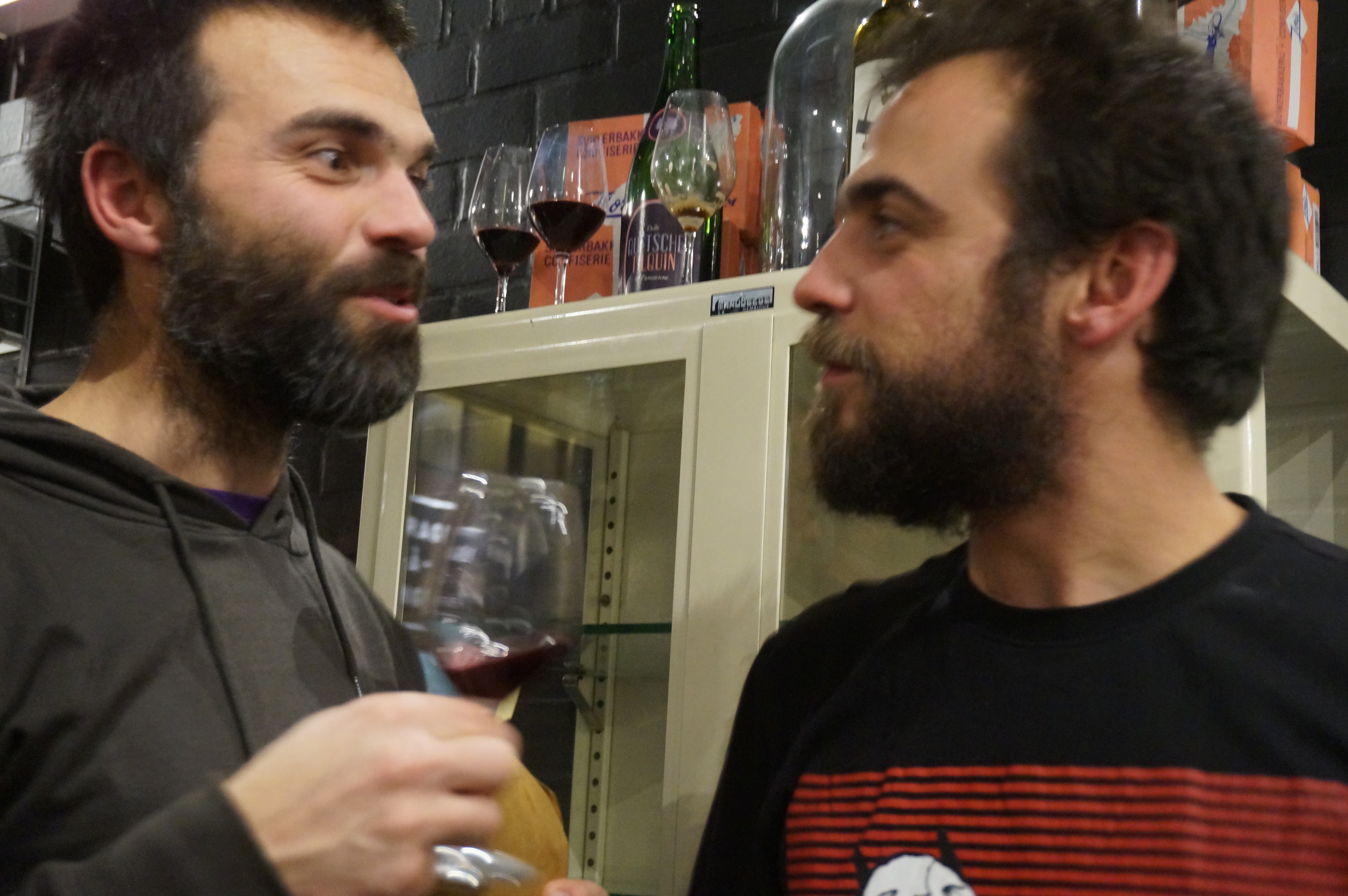 Donald Edwards (left, sommelier at the Peckham Bazaar restaurant in south London) and Alexandre Ravays (right, importer and distributer of natural wines in Belgium.)