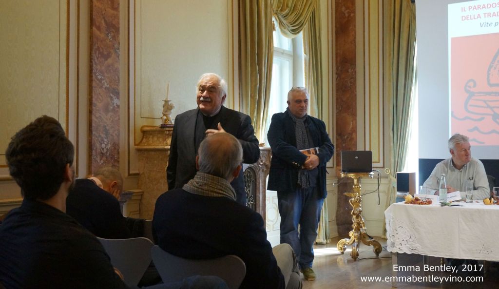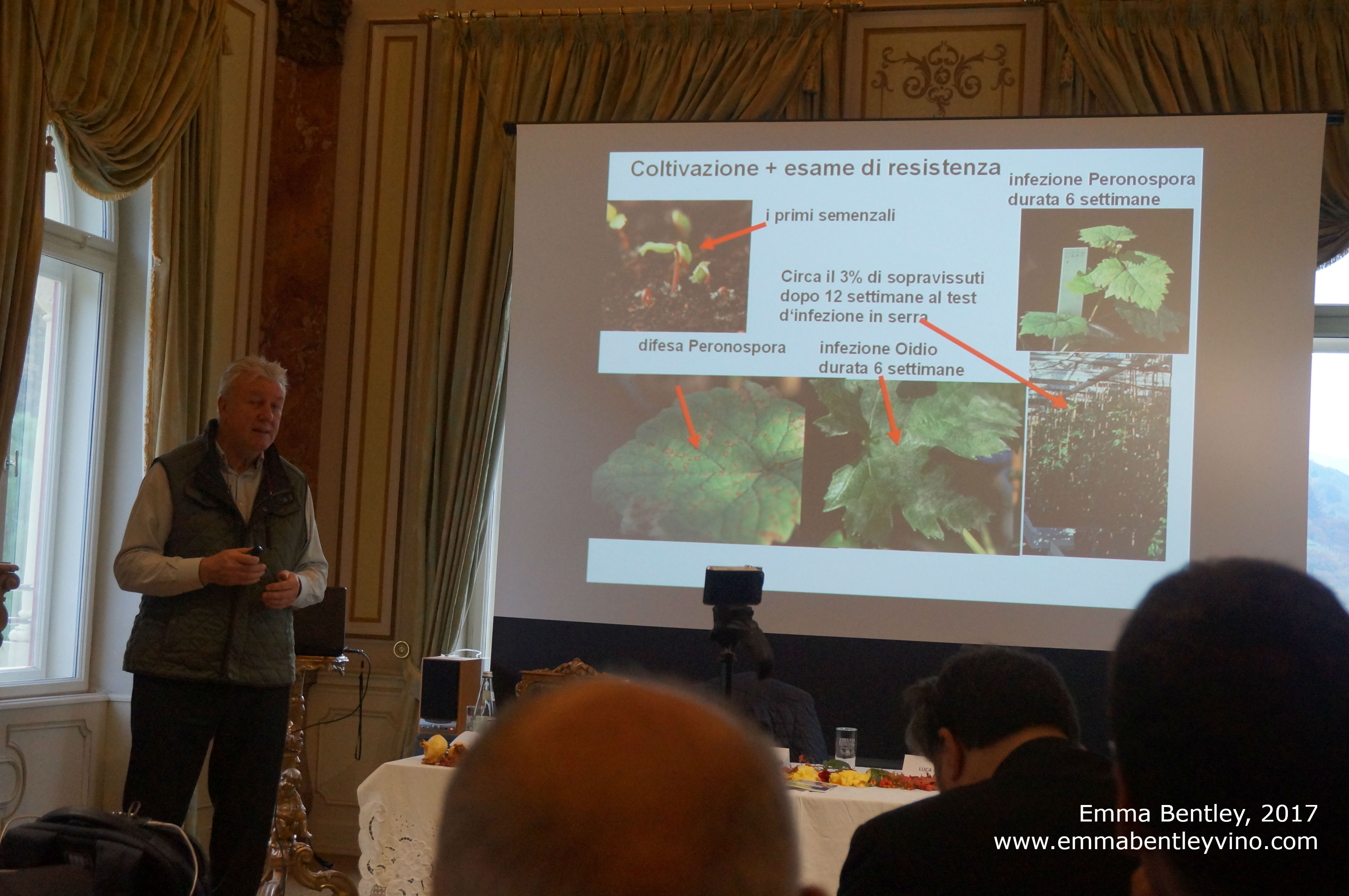 Attilio Scienza is next to take the stage. He’s an animated speaker and he comes alive during his presentation, which admittedly would have more suited to a university philosophy lecture. He puts forward the case for genetically modified foods and particularly cis-genetic vines, fortunately without going far into the scientific nitty-gritty.