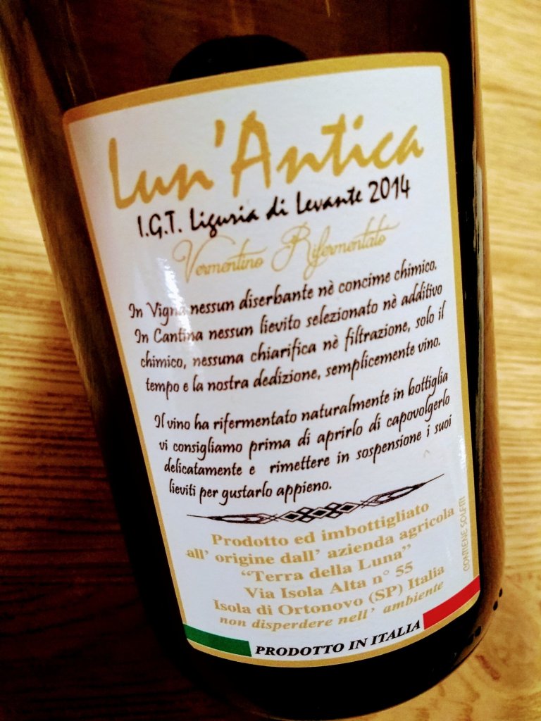 As it so happened, the bottle that I chose last night was Lun’Antica 2014, a refermented vermentino from Terra della Luna in Liguria. It’s a small winery, making natural wines, located just south of the Cinque Terre on the Mediterranean coast.