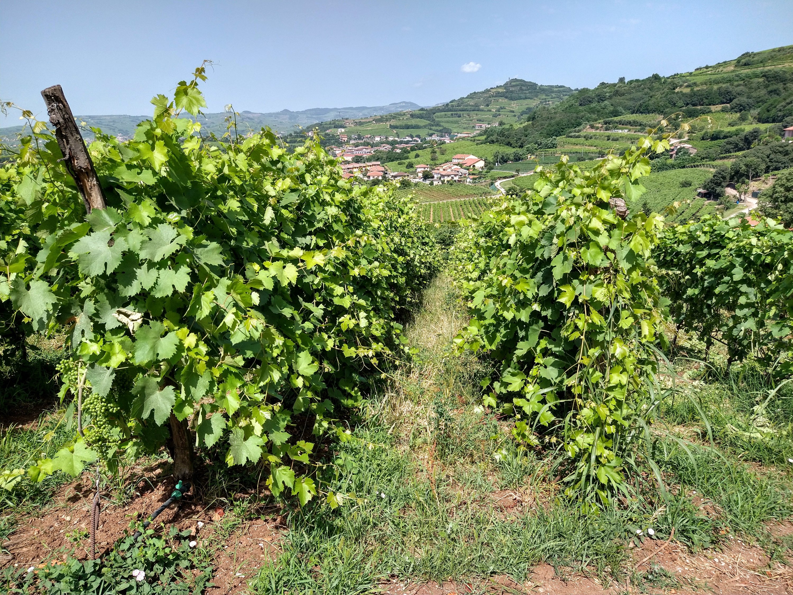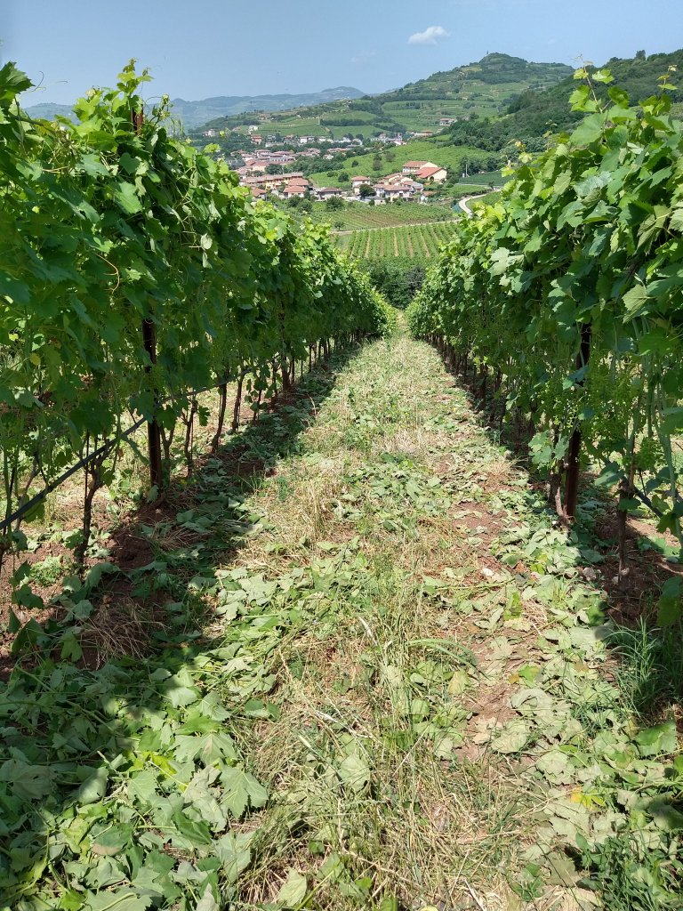 It was a long, slow spring this year; cold and rainy until the very end of May. As you may remember from the headlines at the time, larges swathes of Europe were hit by frost in April and then a couple of localised hail storms rumbled around the Veneto in mid-May. The area which produces grapes for Prosecco DOC was particularly badly hit by both phenomena. Where we are, in the town of Gambellara, only the low-lying lands were affected by the frost… and producers who work with the garganega grape were let off more lightly than those working with glera or pinot noir because garganega is a relatively late-ripening variety and therefore the buds were barely formed at the time.