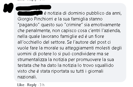 “It has been in the public realm for years, Giorgio Pinchiorri and his family are “paying” for his “crime” both emotionally and criminally, I don’t understand what the restaurant has to do with it, in which families work and which is a flagship in the industry.”