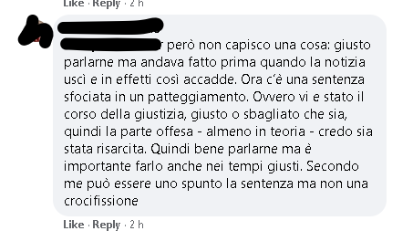 “There’s something I don’t get: it is right to talk about it but it had to be done when the news first came out and in fact it did. Now there is a sentence in a plea deal. That is, there has been the course of justice, right or wrong, so the offended party – at least in theory – I believe has been compensated. So good to talk about it but it is also important to do it at the right times. In my opinion, the sentence can be a starting point but not a crucifixion.”
