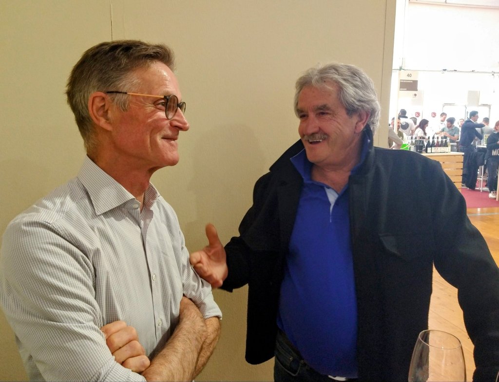 My babbo cracking jokes with my father-in-law, Vinitaly 2022.